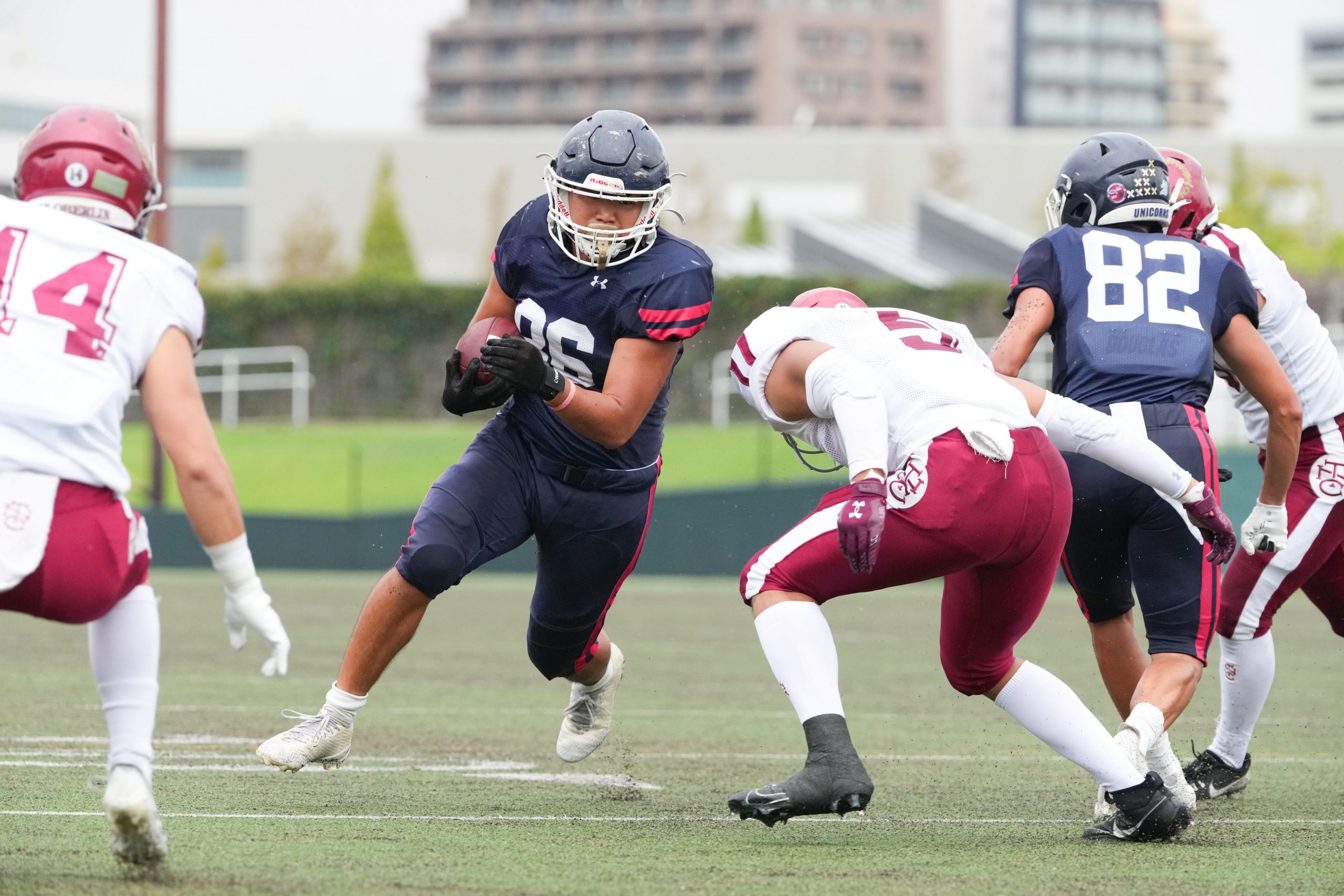 2TDはキャリアハイでもあり、純粋に嬉しかったです。しかし、全く自分の力ではなく、オフェンス11人の力で掴み取った2TDだったと感じています。決めるべきところを決めた嬉しさはある一方で、試合を通してコンスタントに良いプレーができたわけでもなく、一つ一つのブロックの精度や強さにはまだまだ課題があったと思います。offenseとしても「後半の失速」という点で課題があるので、流れを変えられるようなプレーをしていきたいです。