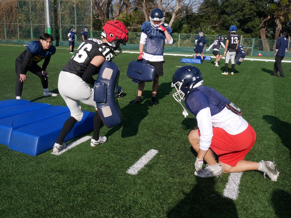 先日、電気通信大学アメリカンフットボール部の皆様と合同練習を実施いたしました。当日は基礎トレーニングに加え、実戦形式のメニューにも取り組み、普段とは異なる相手と向き合う中で、互いに良い緊張感を持ってプレーする充実した時間となりました。