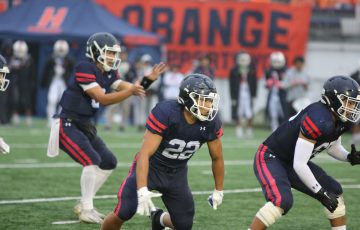 【熾烈なQBスターター争いに名乗りを上げる 3年QB #8 山岡葵竜(佼成学園) 写真提供:森川智之・徳子】