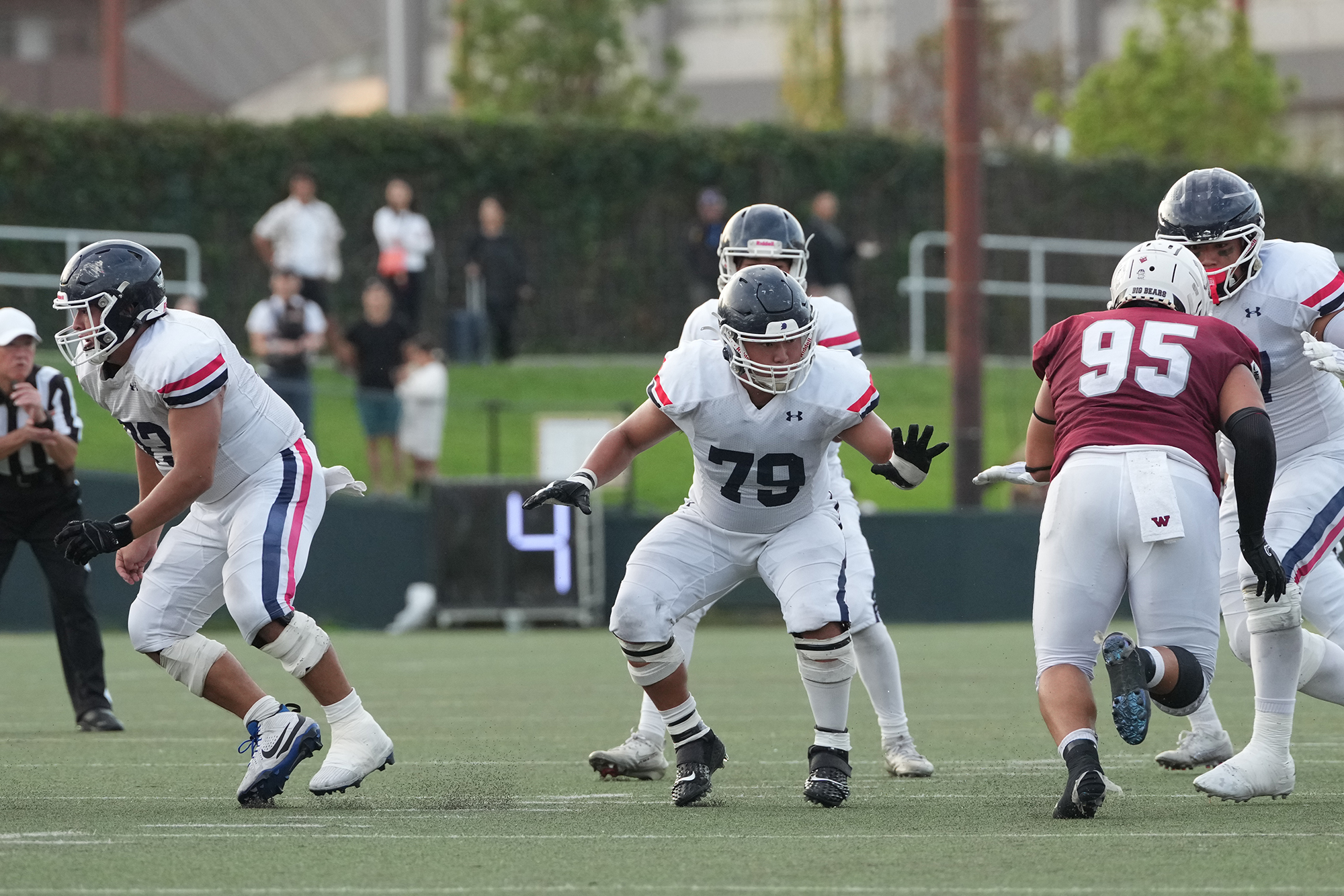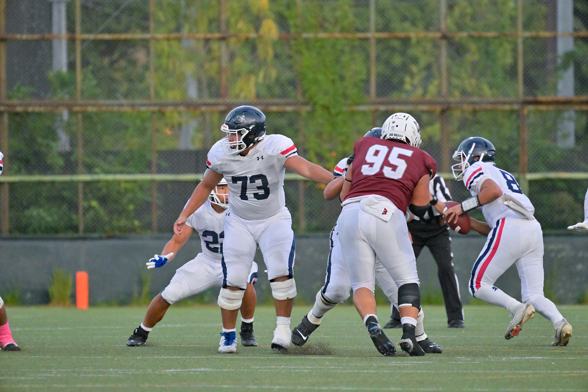 あまりオフェンスラインに触れてこなかったが、この試合のスターティングラインナップは#53上口(4年・鎌倉学園)、#65松江(1年・塾高)、#73大坪(4年・佼成学園)、#77岩戸(3年・塾高)、#79丹羽(3年・塾高)という布陣。