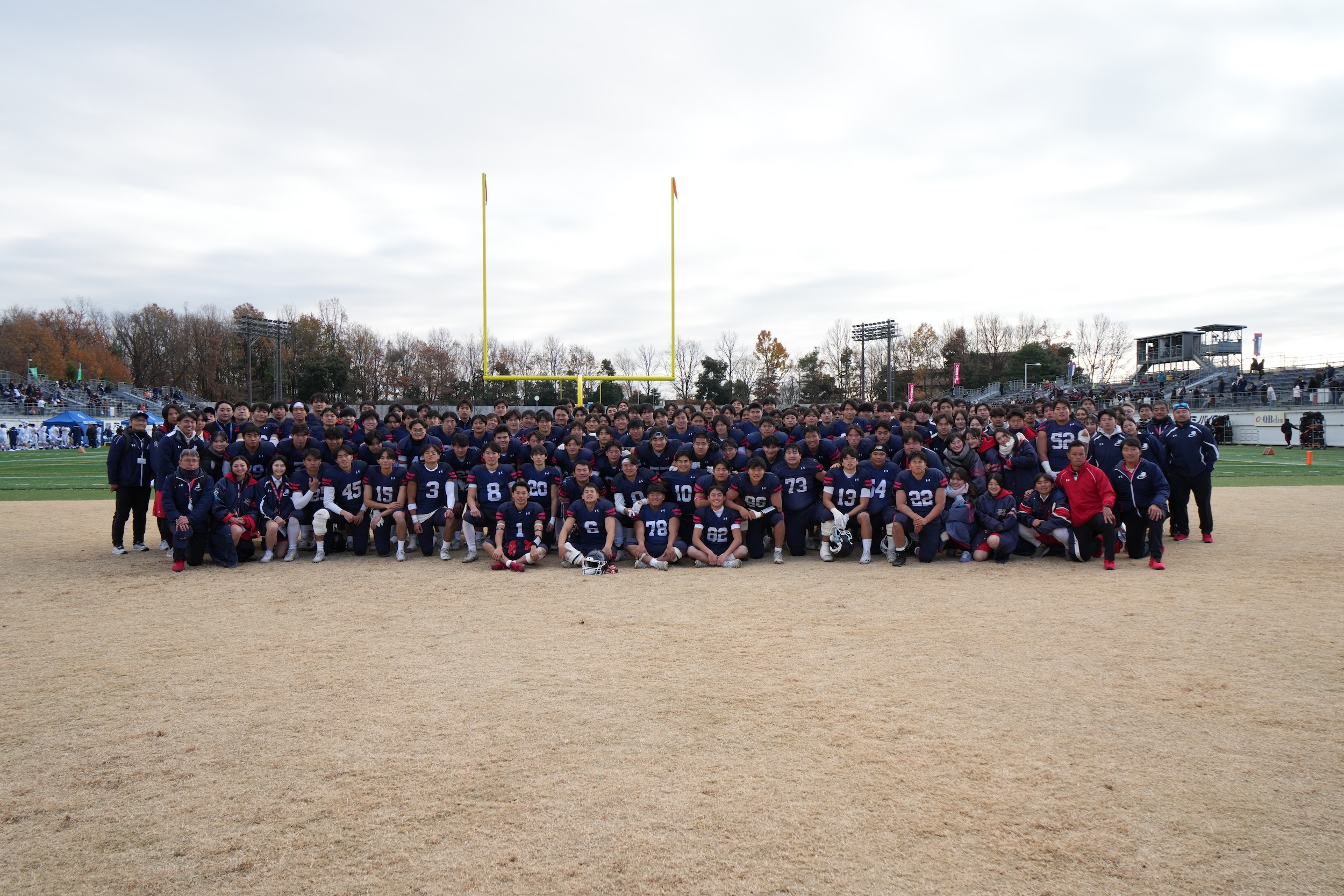 残り1分11秒で回ってきたディフェンスは、 わずか24秒で攻守交代に追い込むナイスディフェンス。 ディフェンスを引っ張ってきた功労者LB#13赤木(4年・ 鎌倉学園)の切れ味あるサックが光りました。