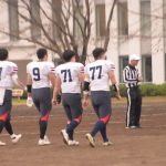 3つでとめたディフェンス陣。LB#80田代、LB#4仁藤