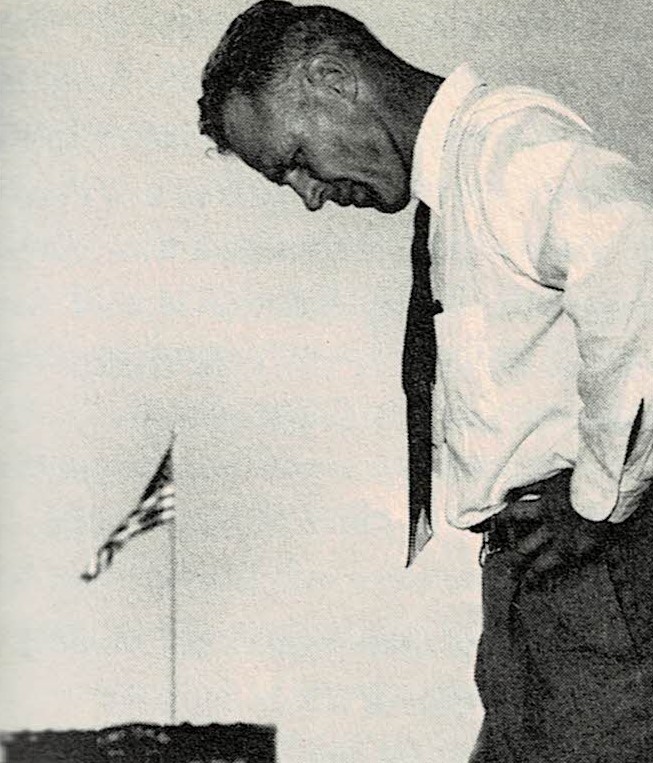 1953年、シーズン初戦ノートルダム大に敗れて下を向くバド・ウイルキンソン。しかし、この後から47連勝が始まりました。 出典:I Remember Bud Wilkinson, by Mike Towle