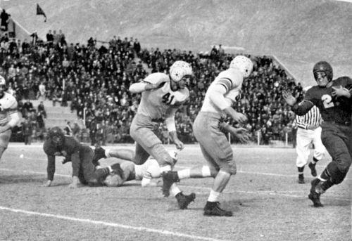 1941年マイアミ大vsテキサス工科大。白ヘルメットがマイアミ大で、今のユニフォームと良く似ています。 出典:Wikipedia