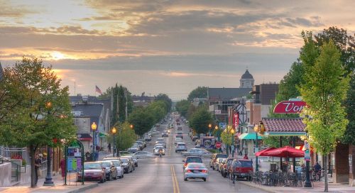 インディアナ大があるブルーミントン市の中心街。田舎の景色ですね 出典:Wikipedia